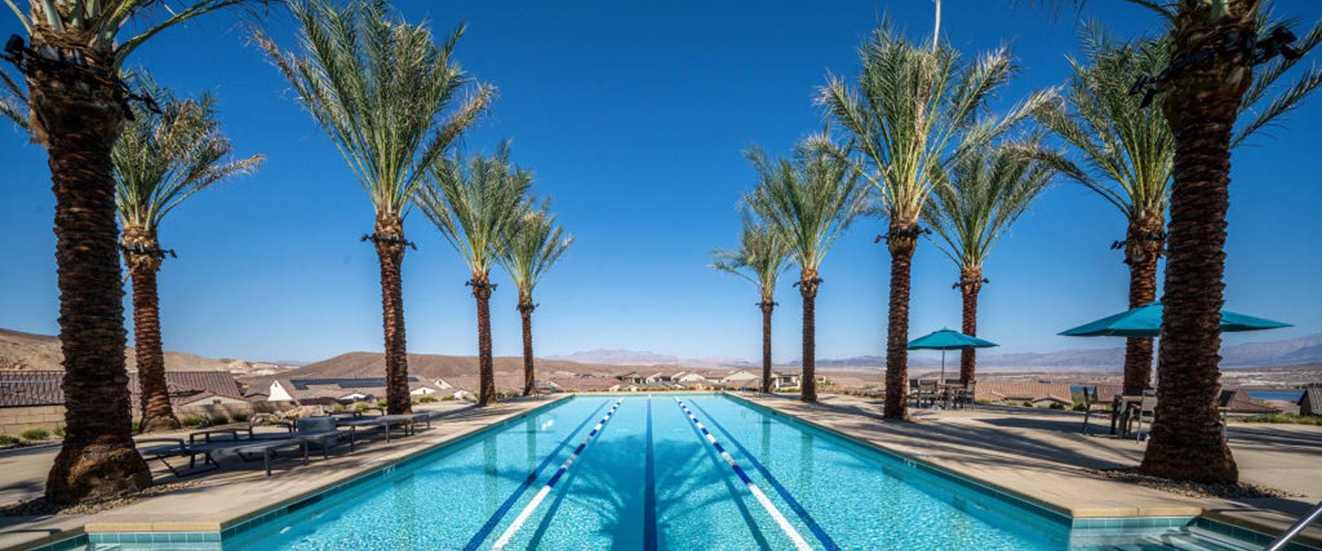 A master planned community of single-family homes, recreation areas, commercial, retail, resort hotels and golf courses situated on Lake Las Vegas. The rec center is nestled in the hills, overlooking the desert lake oasis providing abundant amenities including pools, spas, pickleball, and outdoor gathering areas.